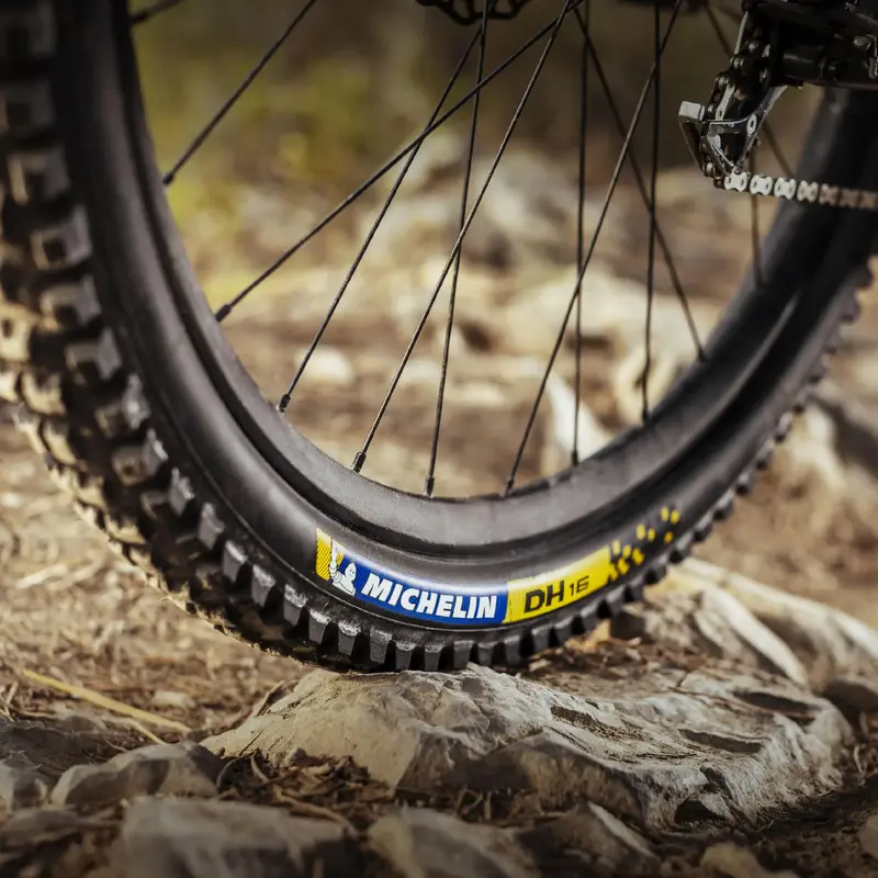 Verhoog uw snelheid op zwaar en gemengd terrein dankzij het nieuwe loopvlakprofiel geïnspireerd op de originele MICHELIN DH 16-band